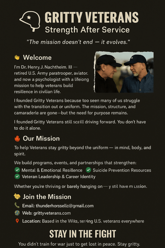 I founded Gritty Veterans because too many of us hit a wall when we leave the military — lost without the structure, camaraderie, and mission that defined us.